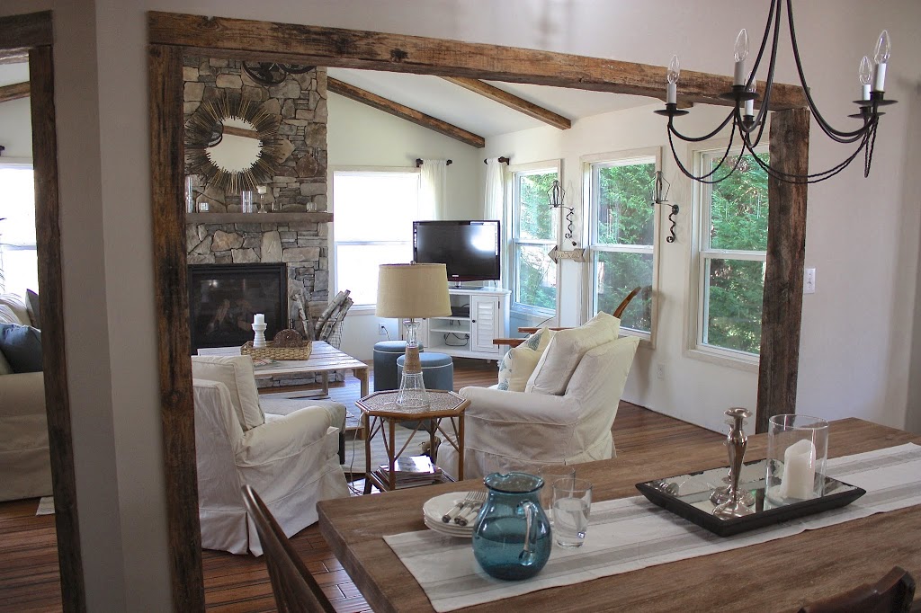 You’re probably wondering where we got all this amazing rustic wood…Well, back when Scott was a Policeman he was patrolling behind an office building and spotted about 30 20′ long beams that had been sitting there for quite some time. He contacted the company that they were behind and the GM said he could help himself to them (yes, for free)- SCORE:)